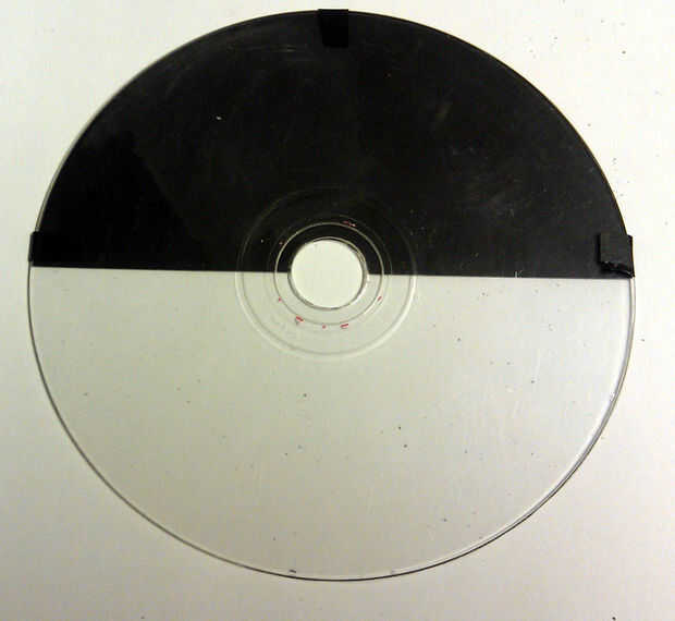 Use un cuchillo para cortar el anillo interior. La transparencia en el CD en blanco de la cinta. (imagen 22) Voy a utilizar este patrón para encontrar la velocidad del motor.