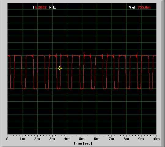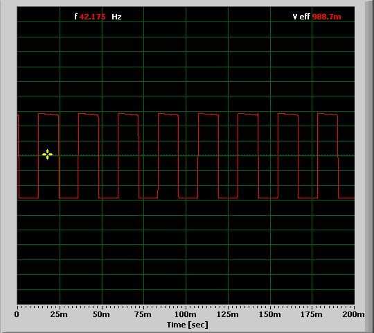 Ir a http://www.zeitnitz.de/Christian/scope descargar e instalar tarjeta de sonido osciloscopio. Conecte el enchufe de 1/8" a su entrada de tarjeta de sonido del ordenador y abrir el Scope.exe. Se debe tomar la forma de onda del altavoz usando este software. Por ejemplo, la forma de onda generada por el motor que estoy usando con esta configuración es una onda cuadrada de 42,175 HZ con 50% ciclo de trabajo. (imagen 25)