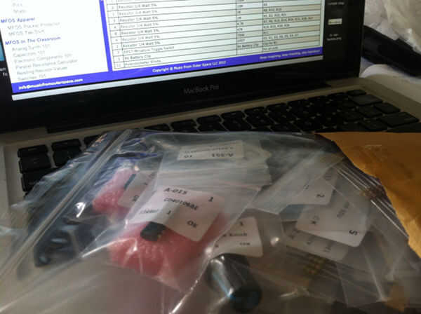 Cuando las piezas llegan Compruebe para asegurarse de que el orden es completo y que tiene todo lo que esperaba. Tenga cuidado con las virutas del IC, ya que son susceptibles a daño por electricidad estática. Manténgalos en su empaque antiestático hasta que esté listo para instalarlos. Tengo varias cajas de almacenamiento que almacenar mis componentes y los componentes son empacados individualmente y bien marcados, de manera que puedo identificar rápidamente cuando los necesite.