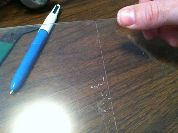 Apenas recuerdo un tiempo antes de tener un cuchillo de plexiglás. Es un cuchillo especial que se utiliza para marcar la superficie de plexiglás a lo largo de la línea de corte. Anotar la superficie realiza un surco o un arañazo preciso donde quieras el plexiglás para romper. Sí, dije "break" porque eso es lo que hará para conseguir las dos piezas. Más bien de un "complemento" de un "break". Si no haces la puntuación suficiente profundidad el plexiglás aleatoriamente grieta o fractura. Si usted anota el plexiglás demasiado o no precisamente separó un poco de donde desea dividir.