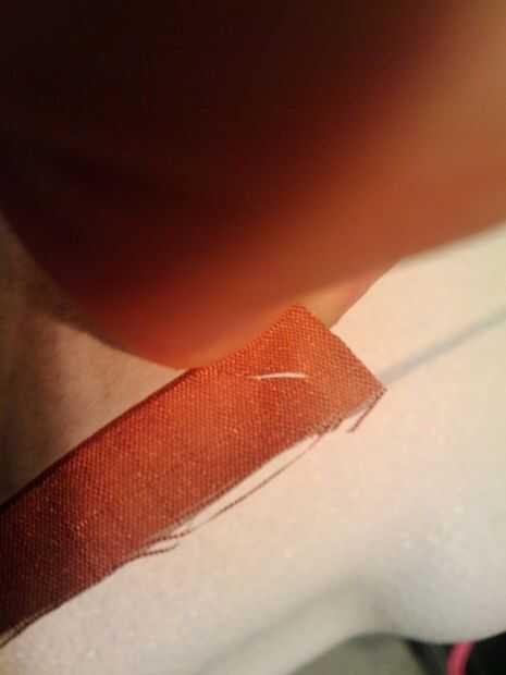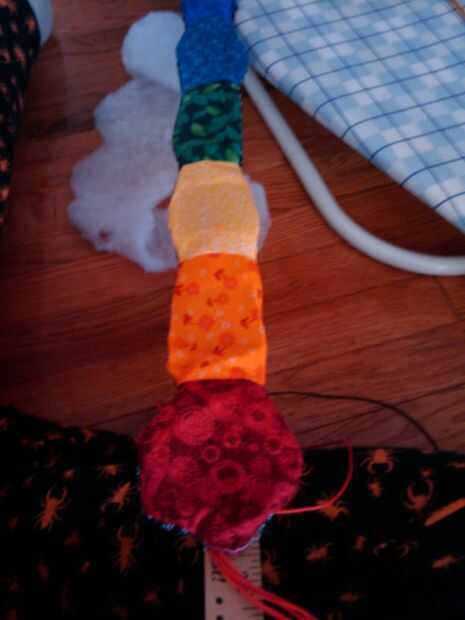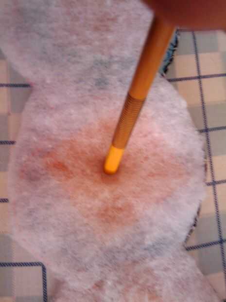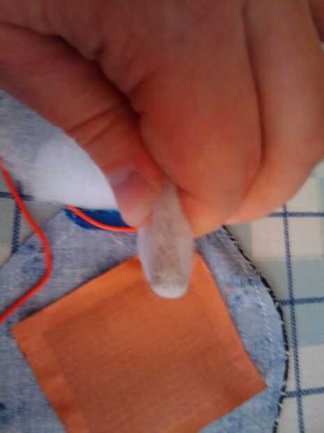 Coser la parte superior e inferior junto con el tejido conductivo hacia fuera, utilice un palillo de la yarda para invertir el conjunto después de coserlo.