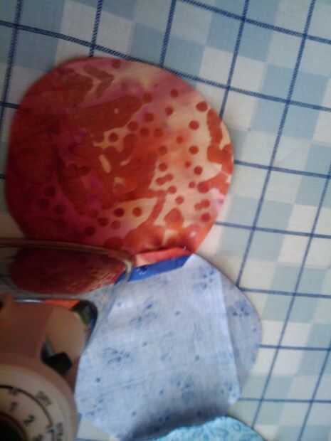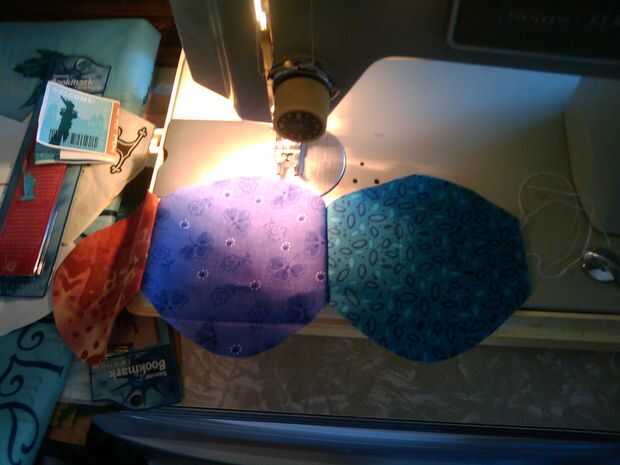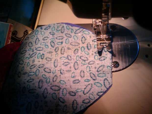 Diríjase a la máquina de coser y dos puestas de las rondas juntas para que el lado bueno enfrenta uno al otro y cose una costura en las partes planas.