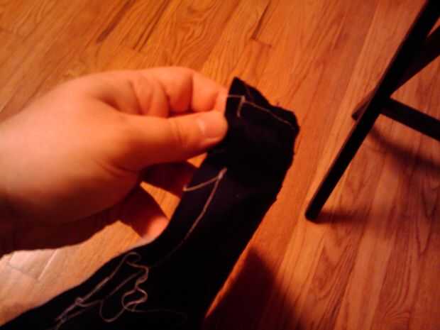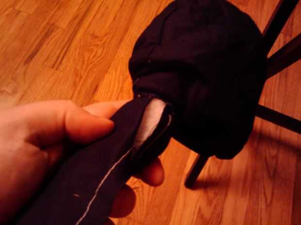 Retire el papel del material de fusión y el fusible en la parte superior de la tela en la parte inferior y la parte inferior de la tela en la parte superior. Envuelva el extra del pedacito en la parte superior.
