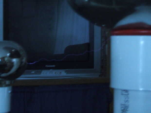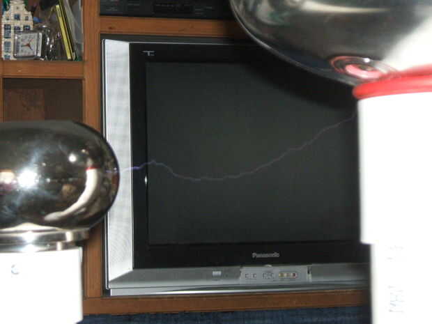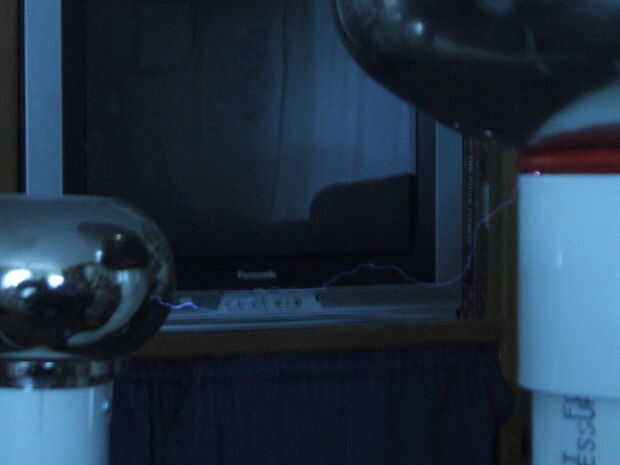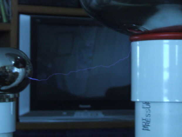 esto me llevó alrededor de medio año para construir por lo que es muy especial para mí. El generador de Van de Graaff es a la derecha y la parte puesta a tierra está a la izquierda.