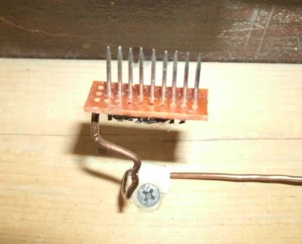 Puede fabricar con clavijas de palo y perfboard o como en el tercer cuadro por rescatar piezas de otros equipos. Este fue el desgarro metal tira de una máquina sumadora.