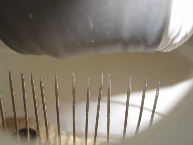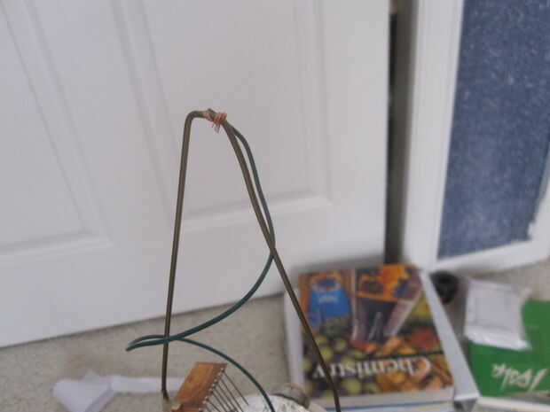 Para el cepillo superior, sencillamente el cepillo contra la parte superior del alambre de colgador de ropa y pegué caliente por lo que era una buena posición y distancia de la correa. Después de soldar cable al cepillo, despojado el otro extremo del cable de la escobilla y trenzado alrededor de la parte superior del alambre de colgador de ropa. Iba a soldar allí, pero funcionó bien sin soldaduras.