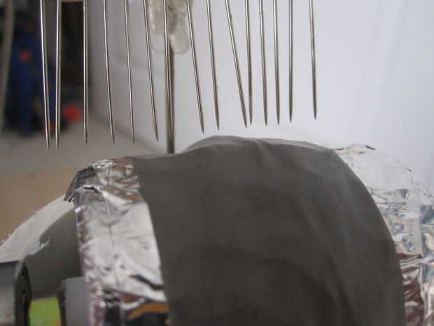 Para colocar el cepillo de fondo que comencé atornillando unos trozos pequeños de madera de desecho para hacer una plataforma dos pulgadas de altura. Puse el cepillo en la parte superior y poner el cuerpo VDG sobre él. Realmente no era una ciencia exacta para esto, acaba de comentar a través de la el tercer agujero perforado en la parte inferior hasta que parecía como la posición y distancia adecuada. En ese momento clavó el cepillo para la madera con un alfiler extra y atornillar la plataforma chatarra a la base antes de atornillarlo en el cuerpo utilizando la brida. Había soldado un cable de la escobilla y funcionó debajo de la brida antes de atornillar abajo.