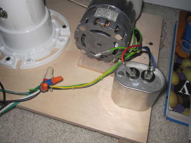 Para cablear el motor, he seguido el esquema que venía con él. Fue el comienzo del condensador e incluye un capacitor de 5 uf 660v, o como me gusta llamarlo, "El condensador de culo grande". Cableado recto hacia delante siguiendo el diagrama, lo único que cambié fue añadiendo el cable que viene del cepillo de abajo a la tierra que va al motor. A pesar de lo que muchos han dicho, tierra de la red ha trabajado bien como un terreno para el pincel de fondo. Soldar todas las conexiones al enchufe de tres clavijas y aisladas con tuercas para alambre (no convencionales, pero efectivos).