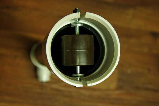 Vio dos muescas en 3" hasta la línea central en el acoplador de PVC, verificar que su varilla roscada puede caber abajo agradable y nivel.