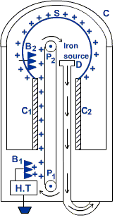 El generador de Van De Graaff inventada en 1929 por Robert J Van De Graaff usa un par de rodillos, peines y una correa de goma (o nylon) para crear una carga de unos mil voltios. Esta carga se extrae en el centro de una esfera hueca de metal, este ú