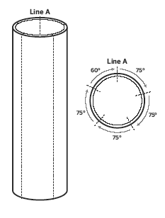 3. cinta 3 hojas de papel A4, por lo que forman una pieza de papel, totalmente recta. Envuelva alrededor de la sección del tubo en cada uno de los dos de las marcas que acaba de hacer, uno después del otro. Asegúrese de que el lado corto del papel es recta a lo largo de la línea A y el papel está recto contra sí mismo donde se superpone. Marque una línea a lo largo del borde del papel en cada extremo. Llame a una línea B y la otra línea C.