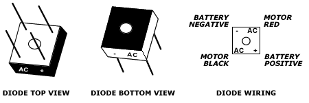 4. Conecte el cable rojo que sale del motor al terminal negativo de la entrada del diodo (AC marcados en el lado negativo).