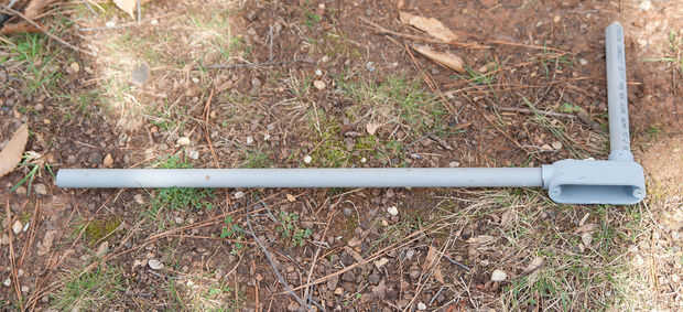 usaba chapa de aluminio de 1/8" para mi gatillo pero el acero es más fácil de encontrar en la mayoría de las ferreterías.Paso 1: Hacer algo que se ve así. Trate de copiar la geometría. Desea la bisagra al estar cerca en línea a la muesca del diente e