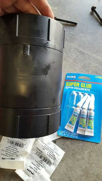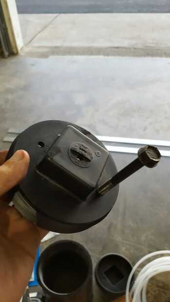 Tomar la 4" limpia a los adaptadores y poner pegamento alrededor de la parte que se desliza en el acoplamiento. Luego deslice el acoplamiento a los adaptadores completamente. Atornille uno de los tapones macho 4" la limpia hacia fuera el adaptador. Tomar el otro enchufe y perfore un orificio de 1/4" en el centro de la misma. Perfore dos agujeros de 3/8" a cada lado de la clavija. Conducir los dos 3/8 acero inoxidable pernos en cada orificio lateral. Tomar el tubo de polietileno y empujar en el orificio de 1/4" y enroscar el tapón de acabado en el otro limpia hacia fuera el adaptador. Eso es que la pila de combustible se realiza.