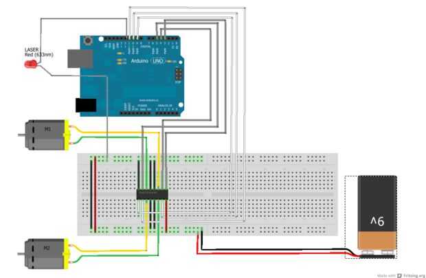 he hecho un pequeño generador láser utilizando motores de corriente continua simple. Yo había hecho mi primer como un niño en la escuela con velocidad sin control qué tan nunca. Éste es controlado por un Adruino UNO y conductor del motor L293.