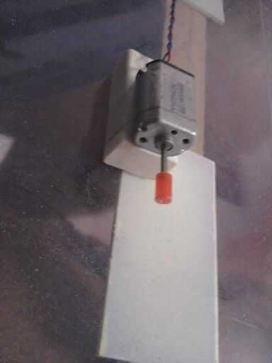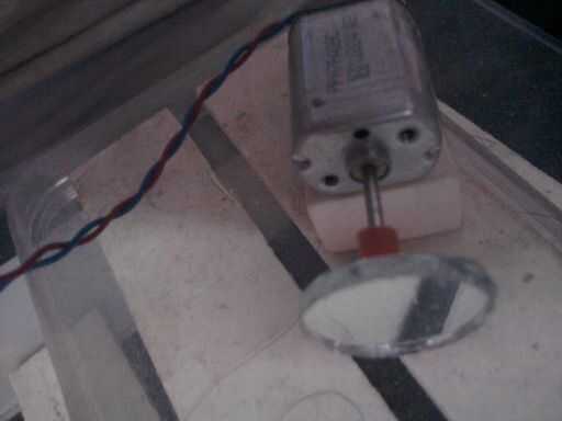 El láser se centra en el espejo de motores con velocidad constante. Esto muestra un círculo en la pared. Ahora coloque el segundo motor de tal manera que el láser saltando desde el primer espejo cae totalmente en el otro. Los espejos tienen que estar muy cerca para que funcione.