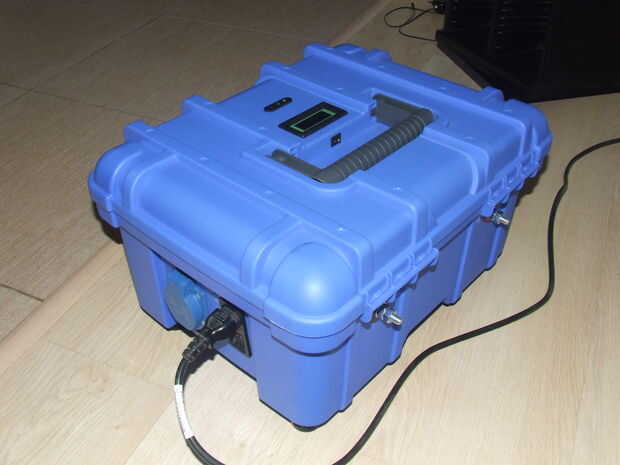 Así que me dirigí a una ferretería local y volvía a casa con el material necesario. Lo principal era el cuadro de proyecto. Tuvo que ser capaz de contener todo, ser lo suficientemente robustos para soportar el peso y proporcionan algunos paneles laterales para los conectores externos. He encontrado esta caja de herramientas azul que eventualmente le dio a mi proyecto un nombre (muy original, que yo sé). Los pasos siguientes describen el proceso de 7 días. Total costo del proyecto (excepto mi trabajo) - alrededor de 180 USD. Barato, silencioso y muy útil.