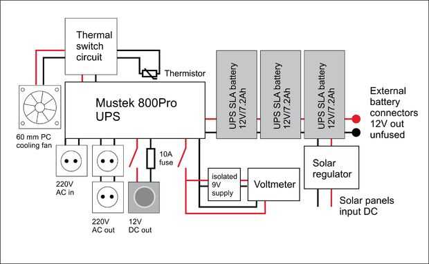 El esquema muestra la disposición general. No soy técnico pero usted debe entender. Es realmente bastante simple. Como un LEGO juego para adultos. Excepto que, repito esto, todo debe hacerse por personas con habilidades adecuadas. Las líneas de 220V directo son mortales cuando se toca. No se muestra aquí, los cables de conexión a tierra fueron todos conservados y conectado a la entrada del enchufe cable de tierra. Esta manera, cada vez que sucede una subida de tensión, puede mantenerse conectado a cualquier toma de corriente y utilice la conexión a tierra de la red. En el camping sin embargo estarán disponible sin conexión a tierra. (A menos que estés dispuesto a pegar una varilla de cobre 2 metros de profundidad en el suelo y conectar a cualquier cable de conexión a tierra del generador.)