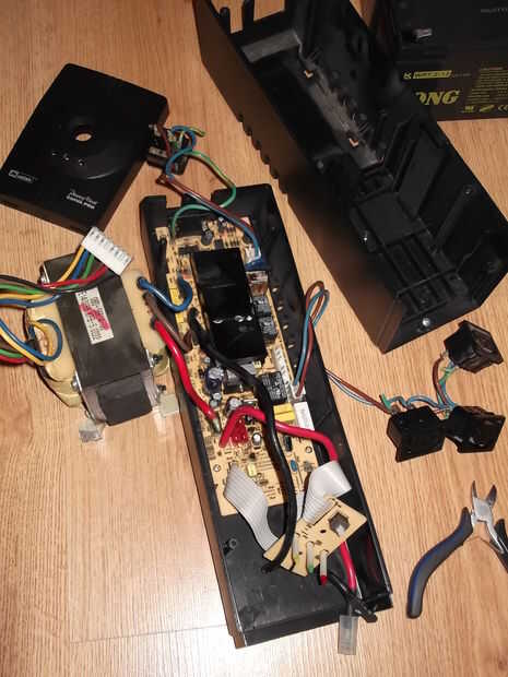 Dentro de este cuadro quería tener la tarjeta electrónica de UPS junto con tres 12V / 7.2AH baterías SLA que tenía alrededor. Las baterías se conectarán en paralelo por un monto total de 12V / 21.6AH Banco de baterías. Luz tor no mucho pero suficiente carga. Primero desmontar la unidad UPS y mantiene sólo la placa base y el transformador. Luego arreglé todos los componentes dentro de la caja. Pronto se me ocurrió que tenía a cosas simples para que se Haz distribuye uniformemente el peso. Como la caja tenía una tapa-mango centrado tenía que cosas simples como la última foto de este paso se muestra. Cualquier otro diseño era fuera de balance y el cuadro imposible de llevar. Entonces he decidido que tengo que reforzar la caja como la parte inferior suave y comenzó a abultarse un poco levantado. Ver el siguiente paso.