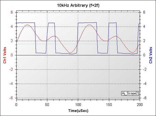 - Forma de onda arbitraria creado mediante una suma de f y 2f