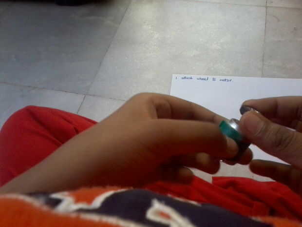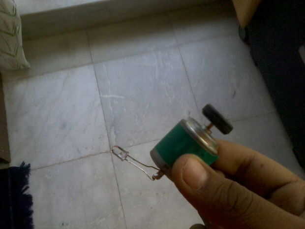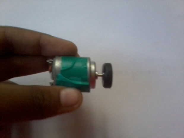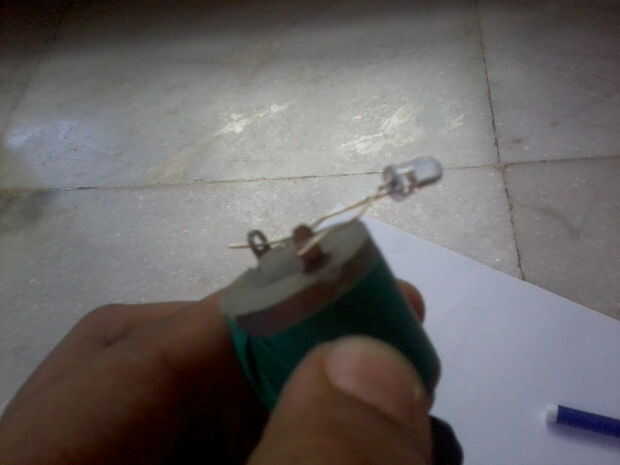 2 tome los extremos del LED y soldarlos a los bornes del motor con cinta adhesiva.