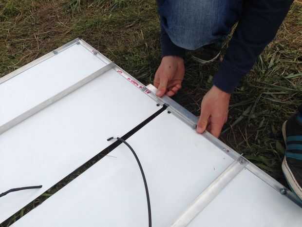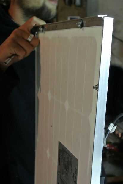 (ARRIBA) Fija las bisagras en paneles solares enmarcadas