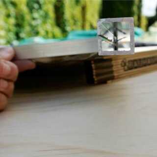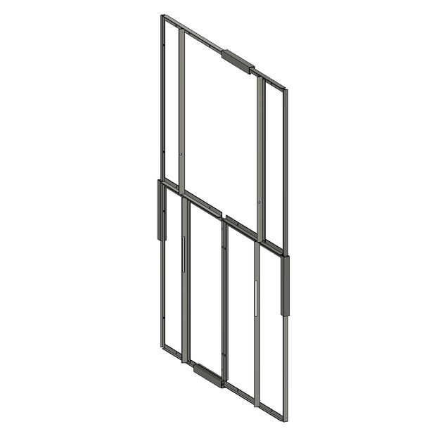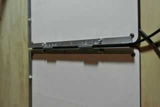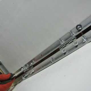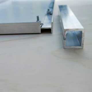 Cuando el conjunto del panel está desplegado, se mantiene abierto y plano con los perfiles de aluminio de 15 cm de largo al cuadrado que se cortaron en un lado. Estos se deslizan en sobre los perfiles de T desde un rincón de la Asamblea desplegado y sentarse en su lugar a medio camino encima del lado de la Asamblea, como se muestra.