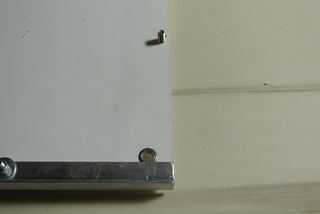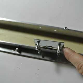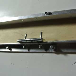 Usted ya perforaron orificios de sujeción en el T - y L-perfiles de acuerdo con las instrucciones en el paso 3 "Preparación de los perfiles de aluminio". Los agujeros para colocar las bisagras en los perfiles L son diferentes, porque tienen que colocarse según las bisagras que tienes, y esto variará. Para marcar la posición, coloque la bisagra de 5 cm desde el extremo del perfil no del lado de los otros agujeros, como se puede ver en la siguiente imagen. Luego marque los agujeros con un marcador metálico.