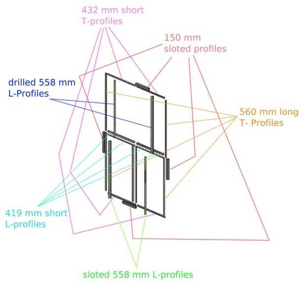 Los marcos de los módulos solares se hacen de T - y -perfiles en L, como se muestra aquí: