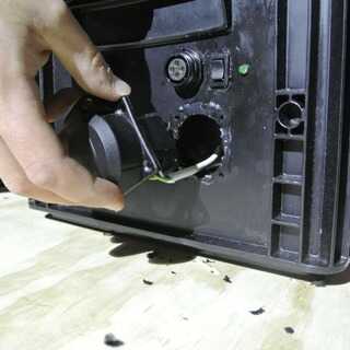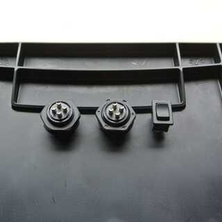 Cuando los agujeros están hechos, las tomas pueden fijarse en ellos, colocándolos desde el exterior con el hilo por delante en el agujero y atorníllela firmemente con la tuerca desde el interior. El interruptor también tiene que ser insertado en el agujero desde el exterior con los contactos más adelante. Luego, la conexión entre el interruptor y la caja debe hacerse impermeable con silicio.