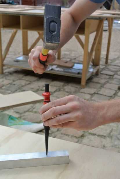 Luego, las posiciones marcadas deben perforar con el punzón de centro y entonces se pueden perforar los agujeros con el taladro.