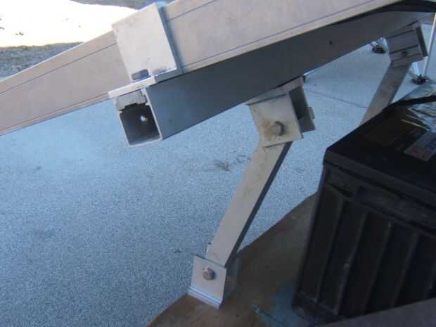Como dije anteriormente cualquier remolque que hacer, sólo asegúrese de que su fuerte. Atornillados a la madera contrachapada en buena por perforación de agujeros en el marco de acero. Entonces utilicé algunos soportes de estante de libro viejo para soportar la madera vertical. Es donde voy a montar los componentes eléctricos. El módulo solar está montado con partes específicas de la industria solar realmente agradable de ProSolar pero se pueden utilizar cosas en su garaje o almacén de hardware. Hice una búsqueda rápida y encontrado algunos al azar PDF con fotos de acero strut y hardware ver capítulo 15