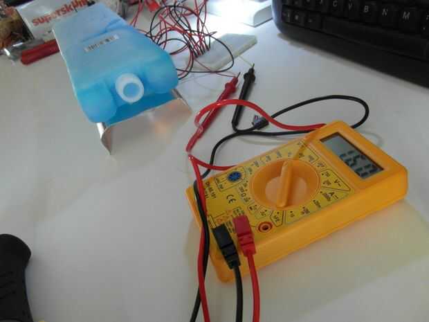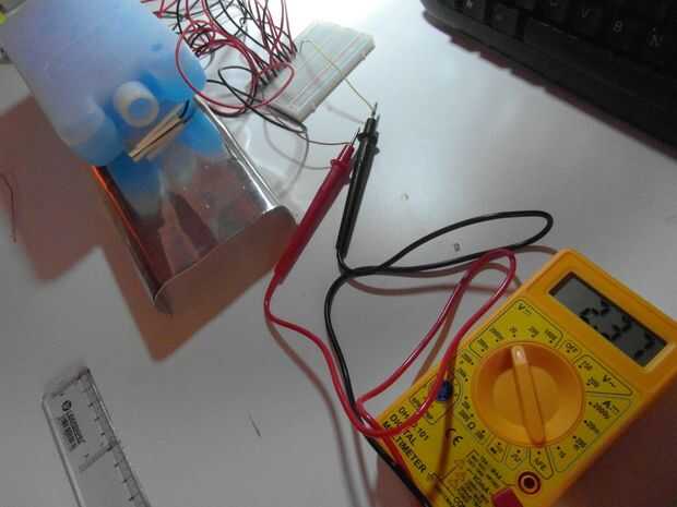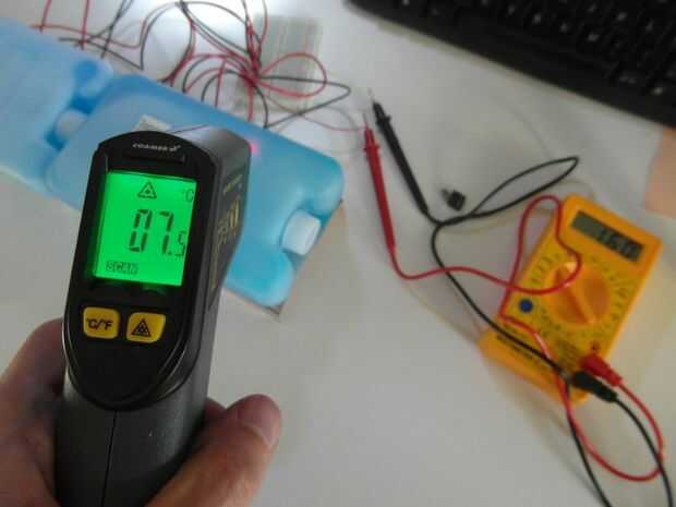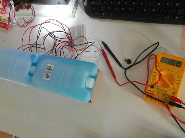 Directamente sobre la placa coloco un cubito de hielo y compruebo cuanta corriente obtengo gracias un multímetro de las Naciones Unidas. De la de es de corriente 1, 19V. Como dije al principio, esta operación es imprescindible para tener una aproximación de cuanto de eficiente es la placa de la dispones ya el mercado es muy amplio y la