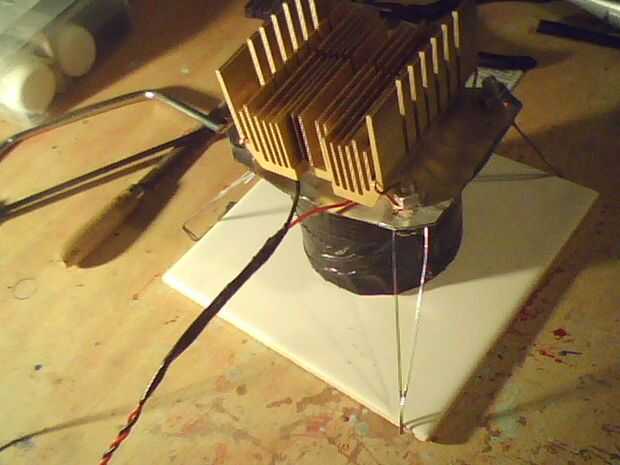 (Ver vídeo para pruebas y lecturas de voltaje digital y la velocidad en subidas, interior mini prueba una "vela de té" prueba secundaria en un pequeño Hobo estilo estufa para sobre 3/4mins dio suficiente energía para cargar una batería o dos, suponiendo que sigue añadiendo combustible para la estufa)