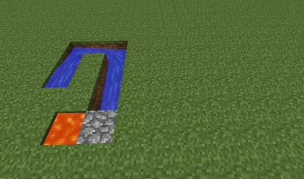 Éste requiere un cubo de agua y un cubo de lava y algunas alta superficie del 2 bloque.
