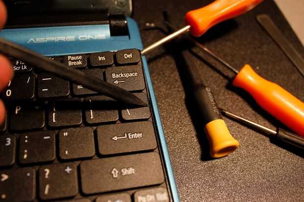 Una vez que tengas el teclado suelto lo fijó aparte para montaje posterior. Utilizar algunos cuidados ya que es fácil quitar las teclas y volver a ponérselos es un dolor. Apenas vale la pena las horas hombre a montar.