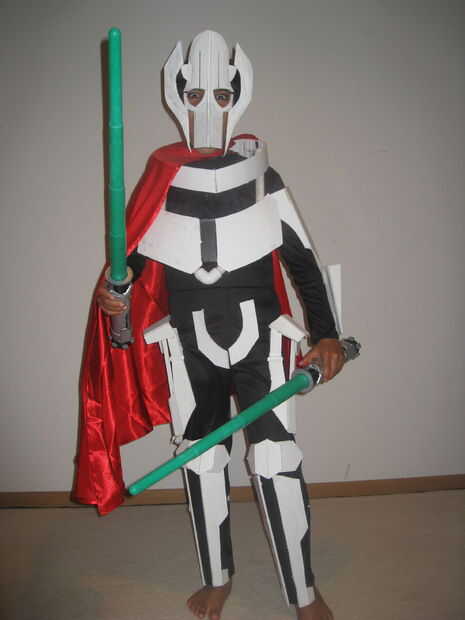 La construcción básica es un jersey negro de un viejo disfraz de halloween store-bought barato y asambleas de base de la espuma conectados velcro. Hay un 'mochila' que tiene brazos mecánicos con bandas elásticas que pueden levantar dando al General un par extra de brazos de PVC.