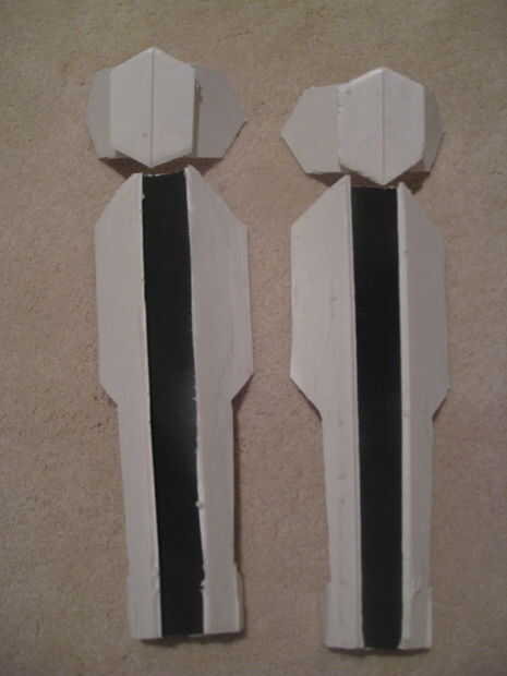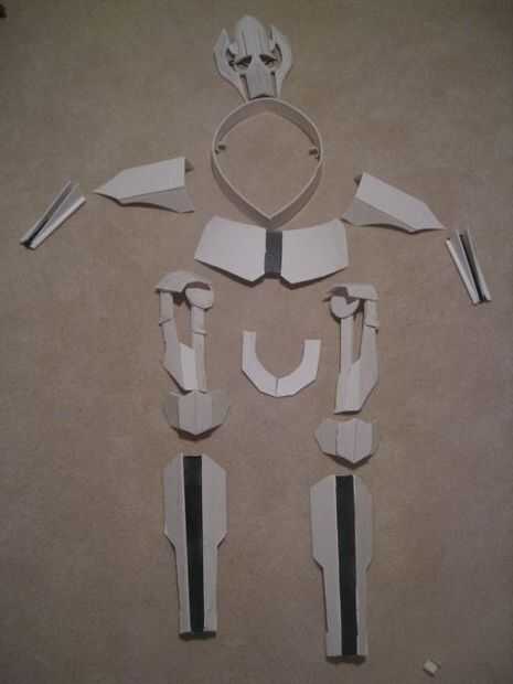 Las Asambleas de núcleo de espuma son de tamaño para un niño, pero por supuesto se podrían hacer más grandes para un adulto. Se cortan de patrones de papel y la mayoría son bilateral simétrica. Algunas secciones son prepintadas y 'resistidas' con témperas diluidas negro para dar efecto 3D sombreado. He utilizado pegamento caliente para montarlos, pero otras colas están bien. Cuando esté seco, están alineados en el traje de cuerpo con velcro en la Asamblea y el traje. El traje de velcro debe coser en (o engrapar si eres precipitado).