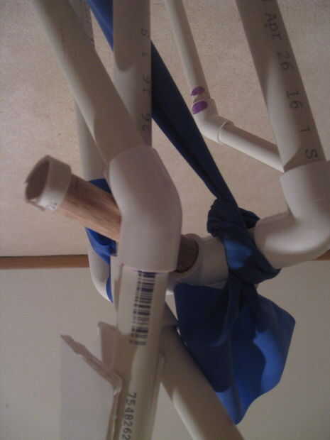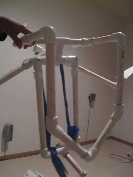 No pegue nada hasta que estés satisfecho con el movimiento y el mecanismo. Tenga en cuenta la los elásticos moviendo los brazos en una silla de PVC arrastrado pueden provocar el arnés para romperse aparte.