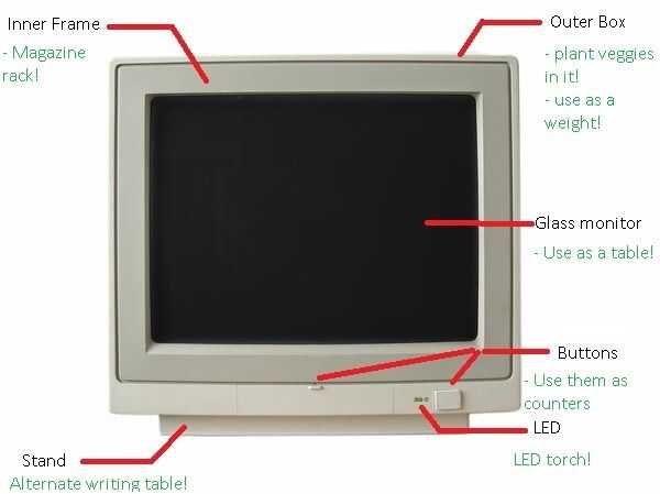 Otra vez reflexionar sobre, "¿Cuál es el uso para el peso de la CRT vieja?". Su respuesta, ¡ puedo levantar para arriba y tienen un gran entrenamiento!