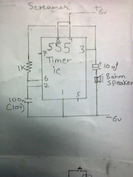Puede ser alimentado por una fuente de alimentación de 6 a 9 voltios. Generará un tono gritando muy fuerte. En este paso se da el esquema.