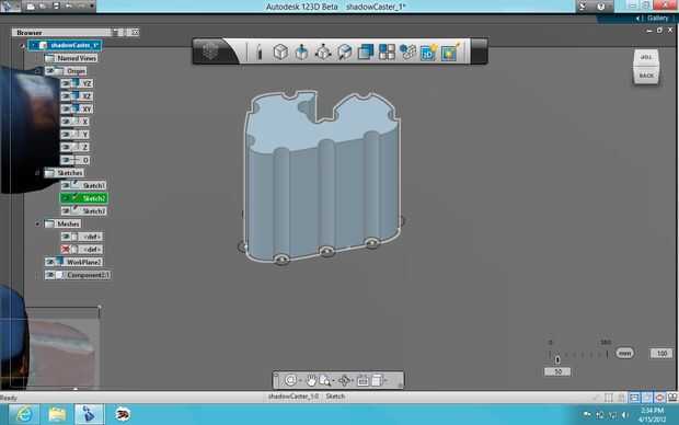 Si el dibujo que hizo de rastreo o de lo contrario se copia, se puede utilizar para crear una función sólida. Este bosquejo copiado es pegado sobre otro plano paralelo, luego reducido y colocado dentro de los ejes de guía/trabajo. La razón de que un bosquejo duplicado se utiliza en vez de un punto, es que a pesar de que su luz puede ser aproximado como un punto de origen, trazado no le gusta.