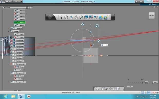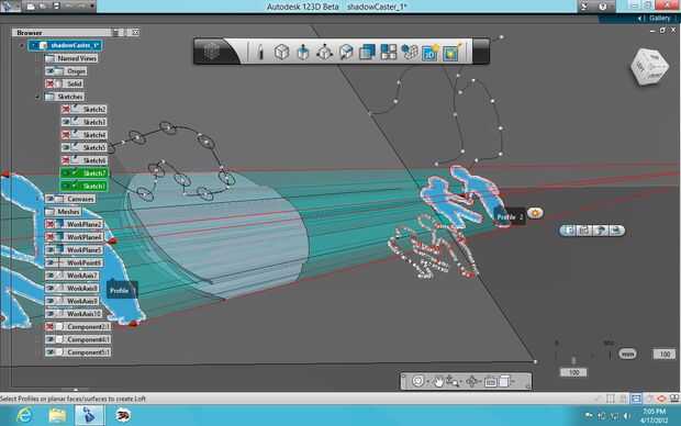 Las líneas de guía se producen a partir de la fuente de luz y conduce hacia el bosquejo original (la sombra). Simplemente creé un punto en el espacio conectado OIMT puntos en los bordes del bosquejo usando y alineadas con el bulbo de la linterna de utilidad construcción -> trabajo eje -> eje en dos puntos.