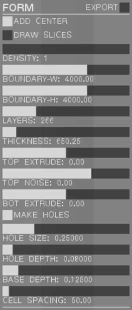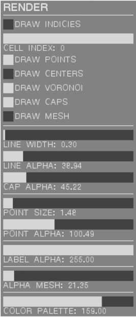 La aplicación tiene la capacidad para generar millones de rompecabezas únicos. La interfaz de usuario expone las variables que controlan el sistema de partículas (que controlan cómo se mueven los sitios de la célula en el tiempo). Esta interfaz controla también dimensiones de rompecabezas y resolución de las formas 3D (número de rodajas de tiempo). Revisa imágenes de la aplicación.
