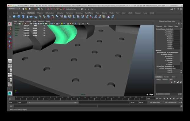 Además de exportar los modelos 3D, la aplicación escribe un guión de MEL. Este script crea una placa base para lo rompecabezas y los modelos exportados previamente por la aplicación de las importaciones. A continuación, crea agujeros en la parte inferior de la placa y piezas. Los orificios en la placa base y piezas coinciden perfectamente.