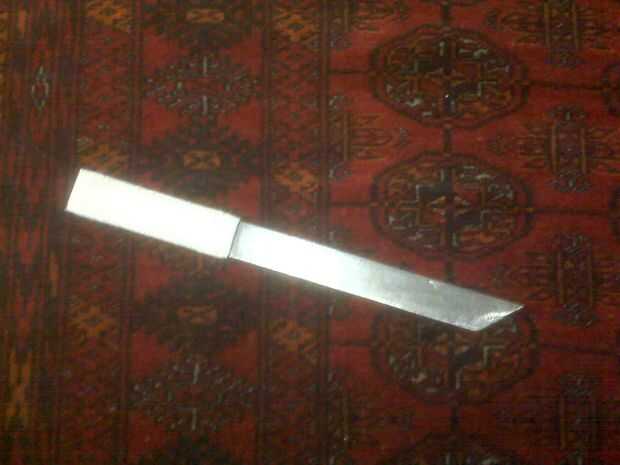 Hola chicos, aqui otra vez, que vienen en usted con un cuchillo simple y genérico que hice cuando estaba aburrido. He usado acero inoxidable 440, pero es absolutamente durable porque la hoja es realmente no que larga. Para el mango usé madera fina envuelta en cadena/cable/lo que sea de blanco carpintero que quiera llamar. Usé una sierra para metales a la forma de la hoja, una fragua pequeña para algunos hoja de endurecimiento y una esmeriladora para afilar el cuchillo y una piedra de afilar para afilarlo más. En general, creo que resultó bastante bien para ser un cuchillo que sólo pasé alrededor de una hora-o-so para el.