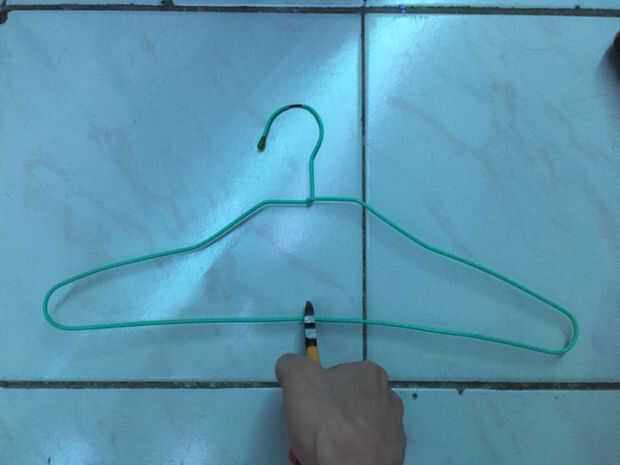 Como se muestra en la foto, cortar la parte inferior de la suspensión del metal por la mitad. Tenga en cuenta que puede ser una lista difícil de cortar si no tienes un alicate de corte decente.