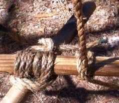 clavo enganches que pueden ajustarse según sea necesario para asegurar el triángulo cuelga uniformemente y los palillos de 4′ son horizontales. Continuar con cada una de las tres cuerdas de apoyo, repita este proceso para el triángulo más grande para que se cuelgue sobre 4′ por encima del suelo.