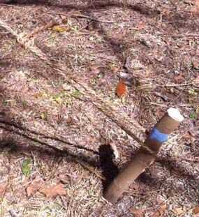 Martillo en una estaca pequeña un par de pies, en cada esquina del triángulo inferior. Con el sobrante de las cuerdas de apoyo, adjuntarlos a las estacas con un enganche de simple línea tensa. Esto además estabilizar la secadora de ropa y le permiten hacer ajustes a la manera de colocar los triángulos de afinar. (Usted puede también hacerlos rápido a las estacas con un