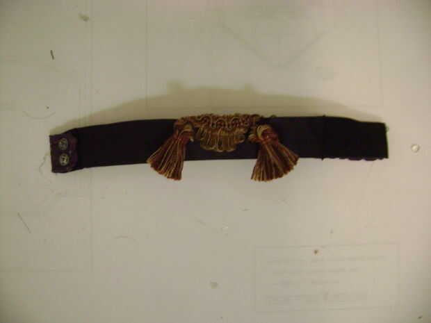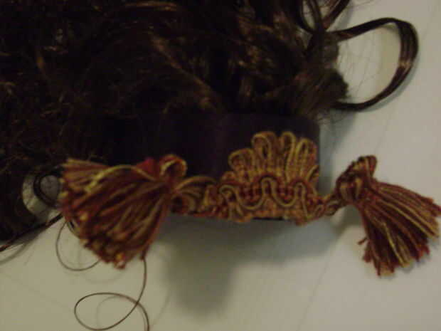 Uso de desechos de la borla de adorno y pantalones para hacer una pieza central para circundar el clip en cola de caballo. Utiliza broches de presión, pero funcionaría un anillo simple.